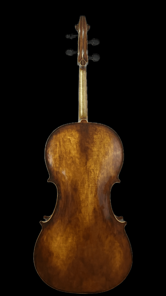 Violonchelo de tamaño 4/4 fabricado con maderas de alta calidad con más de 20 años de secado. El abeto proviene del Val de Fiemme y la madera de arce proviene de Austria. El molde ha sido fabricado a partir del diseño de un modelo propio.