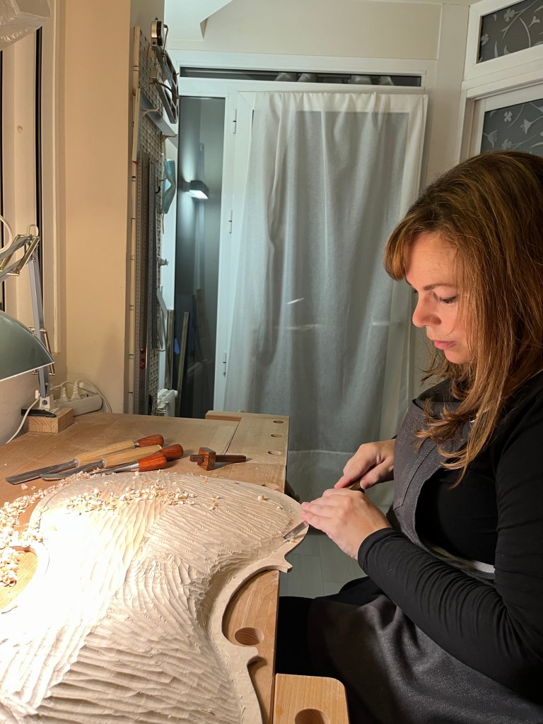 Tras esta emocionante experiencia, decido comenzar a estudiar más a fondo la fabricación y reparación de instrumentos de cuerda frotada bajo la inestimable ayuda y guía del maestro cremonense Sora. Tras cuatro años de estudio e investigación, contacto con los mejores proveedores de maderas en Europa y en el año 2021 comienzo la fabricación de un violonchelo profesional de tamaño 7/8, diseñando el molde especialmente para mi hija Julia, con tallados personalizados y acabados envejecidos al estilo barroco. El violonchelo resulta todo un éxito tanto en su aspecto como en su sonido, y tomo la decisión de dedicarme a tiempo completo a la fabricación y reparación de instrumentos, comenzando así mi andadura como luthier con mi propio taller en Murcia.